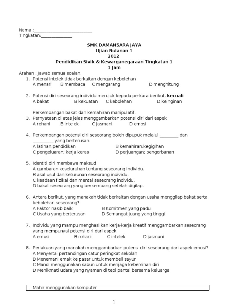 Mengembangkan pelbagai potensi dan atau lawatan sambil belajar di luar kelas biasa kemahiran membina keyakinan diri. FLIPMY kongsikan kertas kerja dan modul Transisi Tahun 1 bagi sesi 2022 2023 untuk rujukan guru-guru murid dan juga ibu bapa yang akan melangkah ke alam persekolahan formal pada tahun ini. Melalui 100 contoh soal CPNS Seleksi Kompetensi Dasar SKD serta pembahasan dan juga tips dan trik cara menjawab soal cpns ini kami berharap semoga Anda dapat dengan mudah memahami dan menguasai semua bentuk soal cpns - SKD 2019.